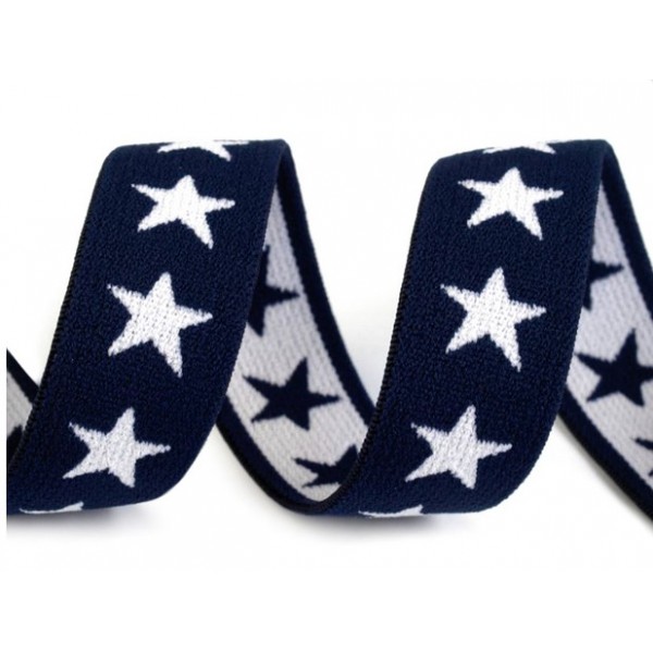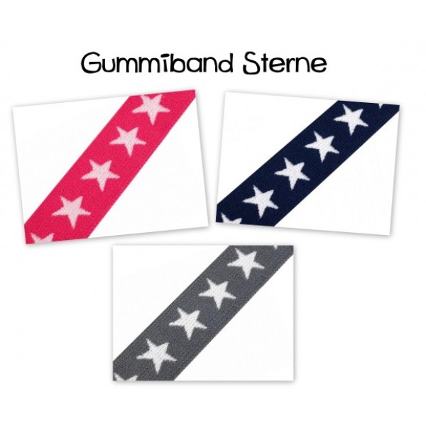 Gummiband Sterne - 20mm grau / pink / blau