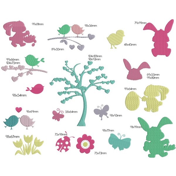 Stickdatei Frühlingsvögel auf Ast