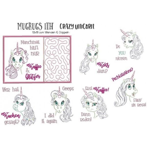 Stickserie ITH - Crazy Unicorn Mug Rugs 2
