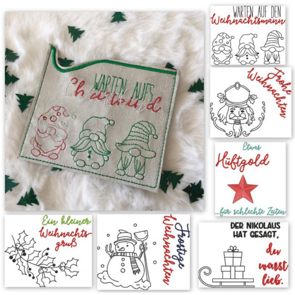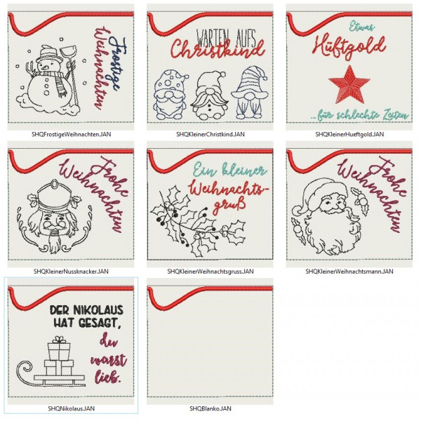 Stickserie ITH - 8 Hüllen quadratisch Weihnachten Line Art inkl. Blanko